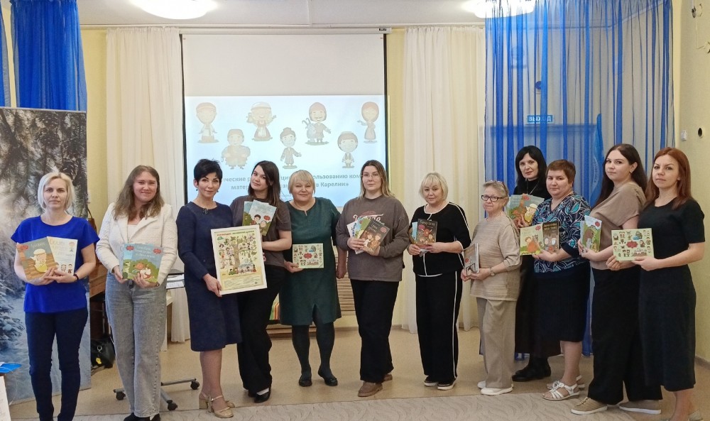 Во время творческой встречи педагогов МДОУ "Детский сад № 12" и МДОУ "Детский сад № 115" состоялось ознакомление с методическими комплектами "Сказки народов Карелии"